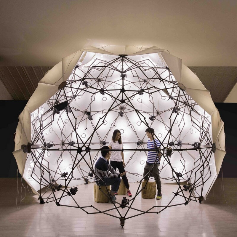 The 3D Copypod by People’s Architecture Office, is a 3D scan booth that can instantly digitize subjects of a wide range of sizes. Objects are surrounded by a spherical array of over one hundred fixed focal length DSLR cameras.