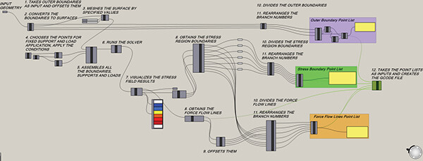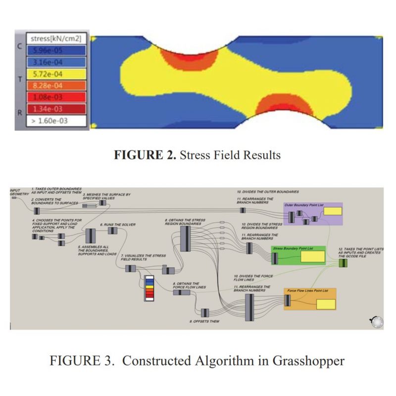 In addition, finite element analyses are performed using Karamba3D, a plug-in for Grasshopper3D. According to the results of the tensile tests, the method offers an improvement of load carrying capacity by about 50% compared to traditional slicing algorithms of 3D printing.
