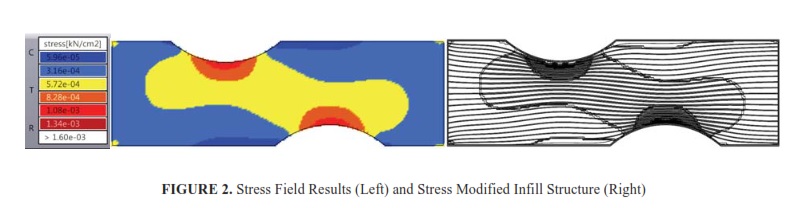 As opposed to the current CAM software, the proposed method provides a way to construct heterogeneous infill structures with respect to the Von Misses stress field results obtained from a finite element analysis. Throughout the work, Rhinoceros3D is used for the design of the parts along with Grasshopper3D, an algorithmic design tool for Rhinoceros3D.