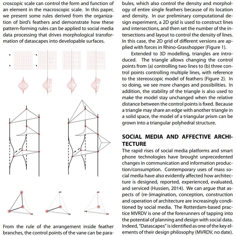 This paper by Chenjun Liu, Tsung-Hsien Wang, Mark Meagher and Chengzhi Peng presents the development of an interactive installation intended as a prototype of experimental affective architecture connected with social media data processing. Social moods and emotions are now spread more widely and faster than ever before due to pervasive uses of social media platforms.