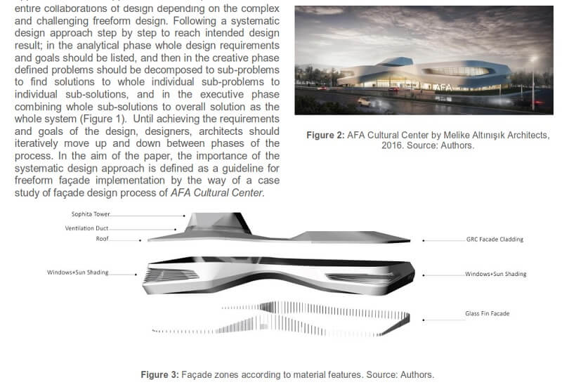 The design and construction of the complex, irregularly shaped, and curvilinear building forms are also known as freeform architecture, have gained an interest form architects and engineers. This paper by Begüm Aktaş and M. Birgül Çolakoğlu presents how freeform façade designs are defined with its curvilinear geometric characteristics and the systematic approach that is used to design and implement them.