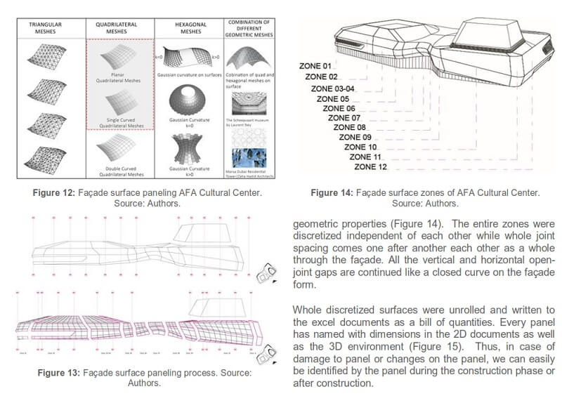 The proposed method incorporates product design and integral façade construction approach at AFA Cultural Center freeform façade implementation. Therefore, the paper aims to improve the viability of the proposed method and decreasing the gap between the other disciplines and architects in a systematic way without losing the creativity of the architects.