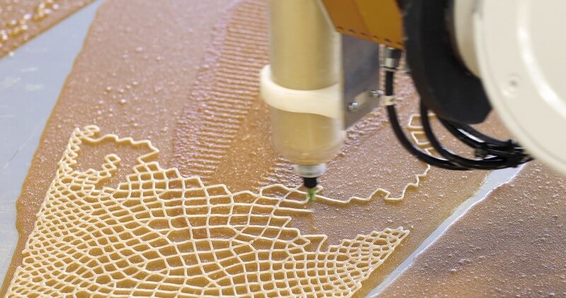 It uses natural ecosystems as inspiration for a material production process that produces no waste. Derived from organic matter, printed by a robot, and shaped by water, this work points toward a future where the grown and the made unite.