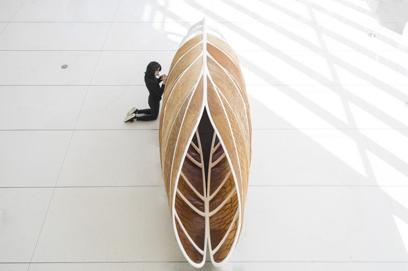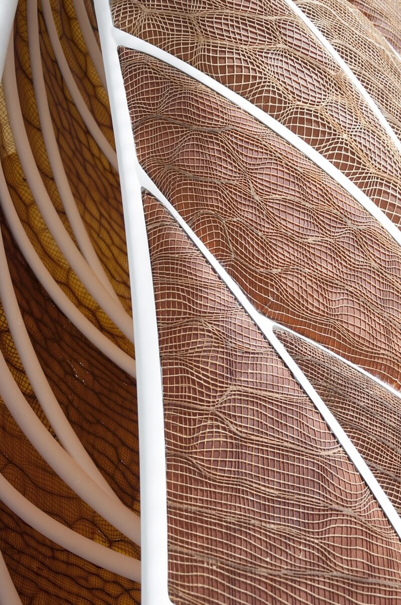 Neri Oxman and MIT have developed programmable water-based biocomposites for digital design and fabrication. Named Aguahoja, the project has exhibited both a pavilion and a series of artifacts constructed from molecular components found in tree branches, insect exoskeletons, and our own bones.