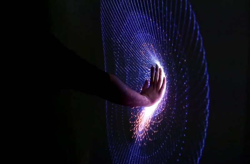 Antrum is a graphical luminous interactive installation, created by Tatiana Plakhova. Artist describes her work as a grotto which the surface is inhabited by strange creatures. The aspect of it changes with the contact of touch from visitors, as if its came alive at this moment. An original way to make the public participate.