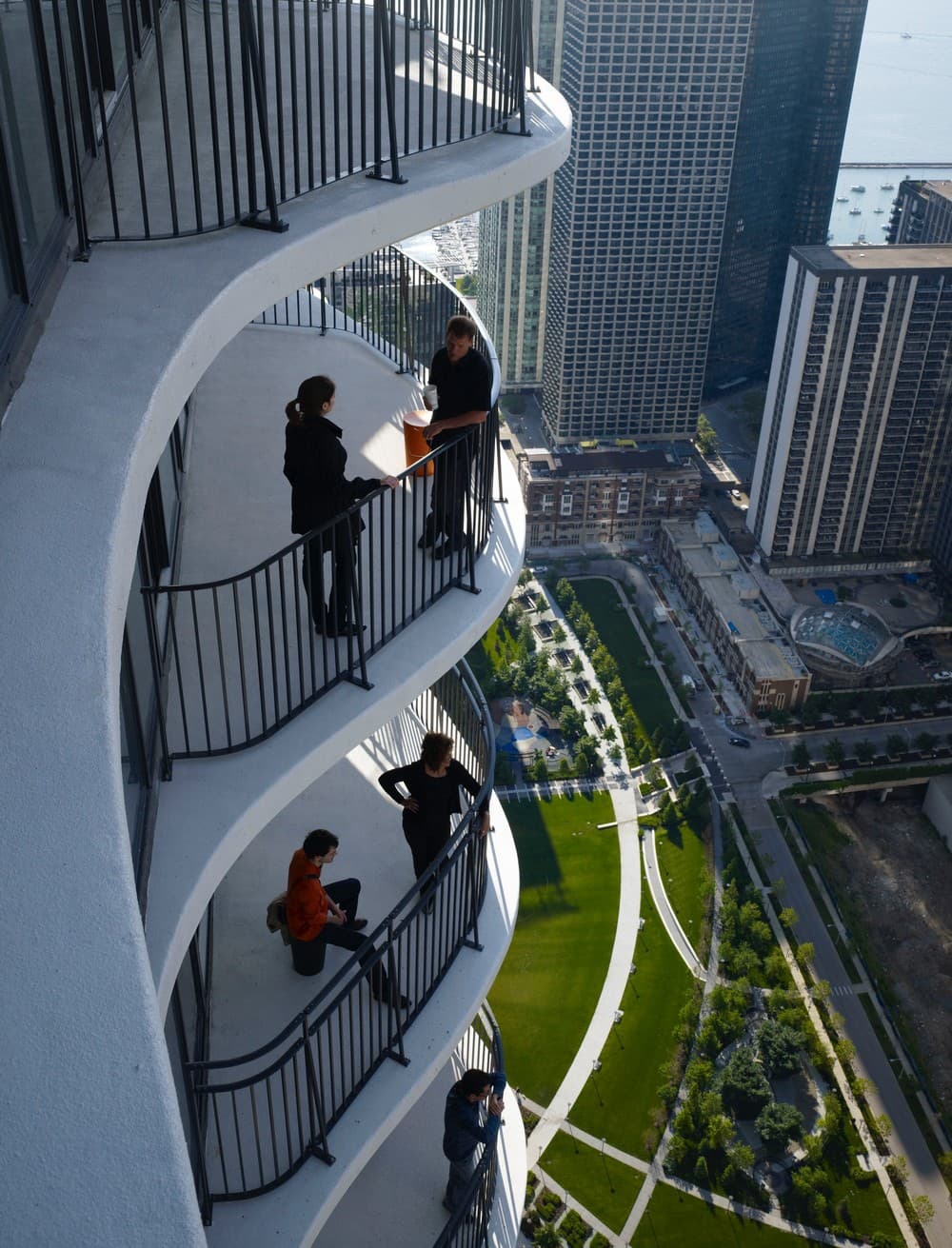 Aqua is an 82-story mixed-use residential skyscraper in the Lakeshore East development in downtown Chicago, Illinois. Designed by a team led by Jeanne Gang of Studio Gang Architects, with James Loewenberg of Loewenberg & Associates as the Architect of Record, it includes five levels of parking below ground. The building’s eighty-story, 140,000 sq ft (13,000 m2) base is topped by a 82,550 sq ft (7,669 m2) terrace with gardens, gazebos, pools, hot tubs, a walking/running track and a fire pit. Each floor covers approximately 16,000 sq ft (1,500 m2). The Aqua was awarded the Emporis Skyscraper Award as 2009 skyscraper of the year, and was shortlisted in 2010 for the biennial International Highrise Award. In celebration of the 2018 Illinois Bicentennial, Aqua was selected as one of the Illinois 200 Great Places by the American Institute of Architects Illinois component (AIA Illinois) and was recognized by USA Today Travel magazine, as one of AIA Illinois’ selections for Illinois 25 Must See Places.