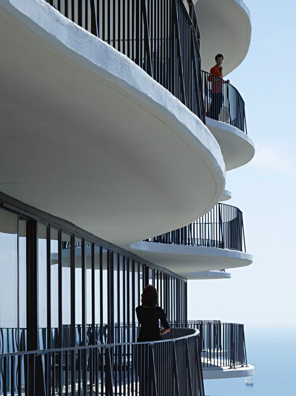 The design for Aqua uses architecture to capture and reinterpret the human and outdoor connections that occur more naturally when living closer to the ground. Its distinctive form is achieved by varying the floor slabs across the height the tower, based on criteria such as views, sunlight, and use.