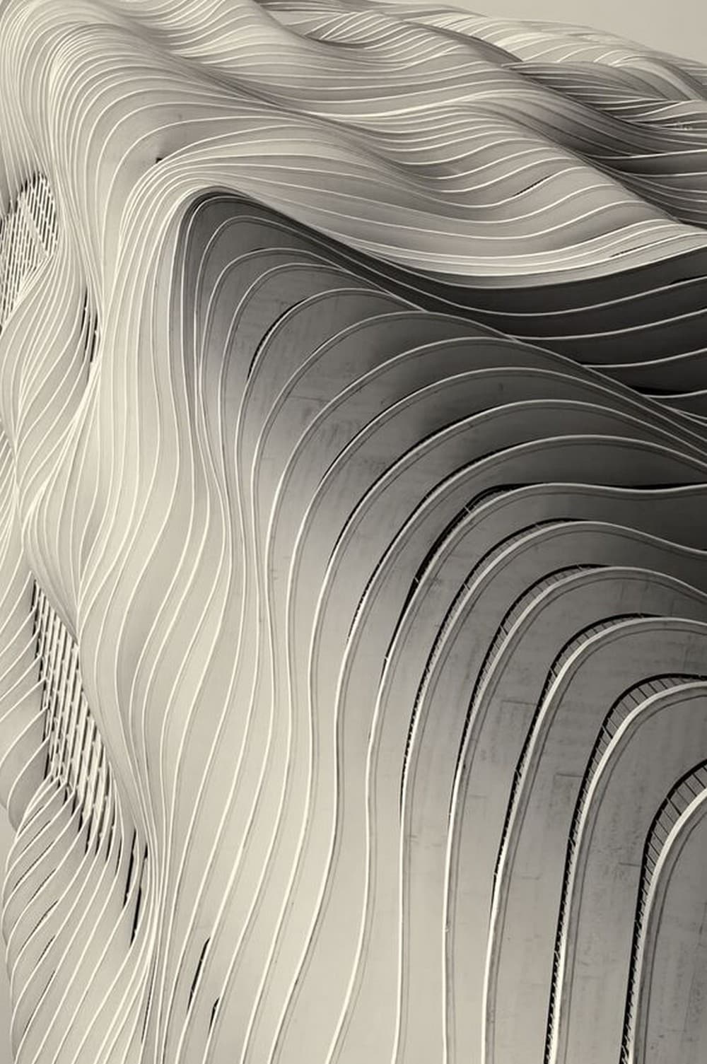 Borrowing from the characteristics of terrestrial topography, the tower was imagined as a vertical landscape made up of hills, valleys, and pools. Independent parameters combine to create Aqua’s architecture.
