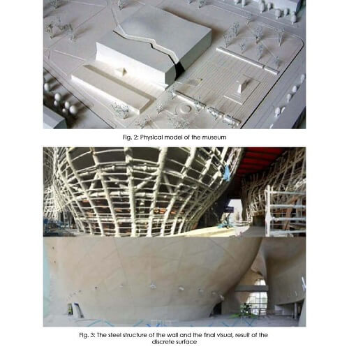 Curvilinear rupture of the building, symbolizing parting the red sea, has been designed as two load-bearing walls with a height of 20 m, with a total area of 2000 m2.