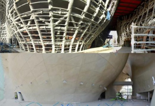 The main body of the museum building is a cuboid separated curved rupture described by the architects as Yum Suf – the parting waters of Red Sea.