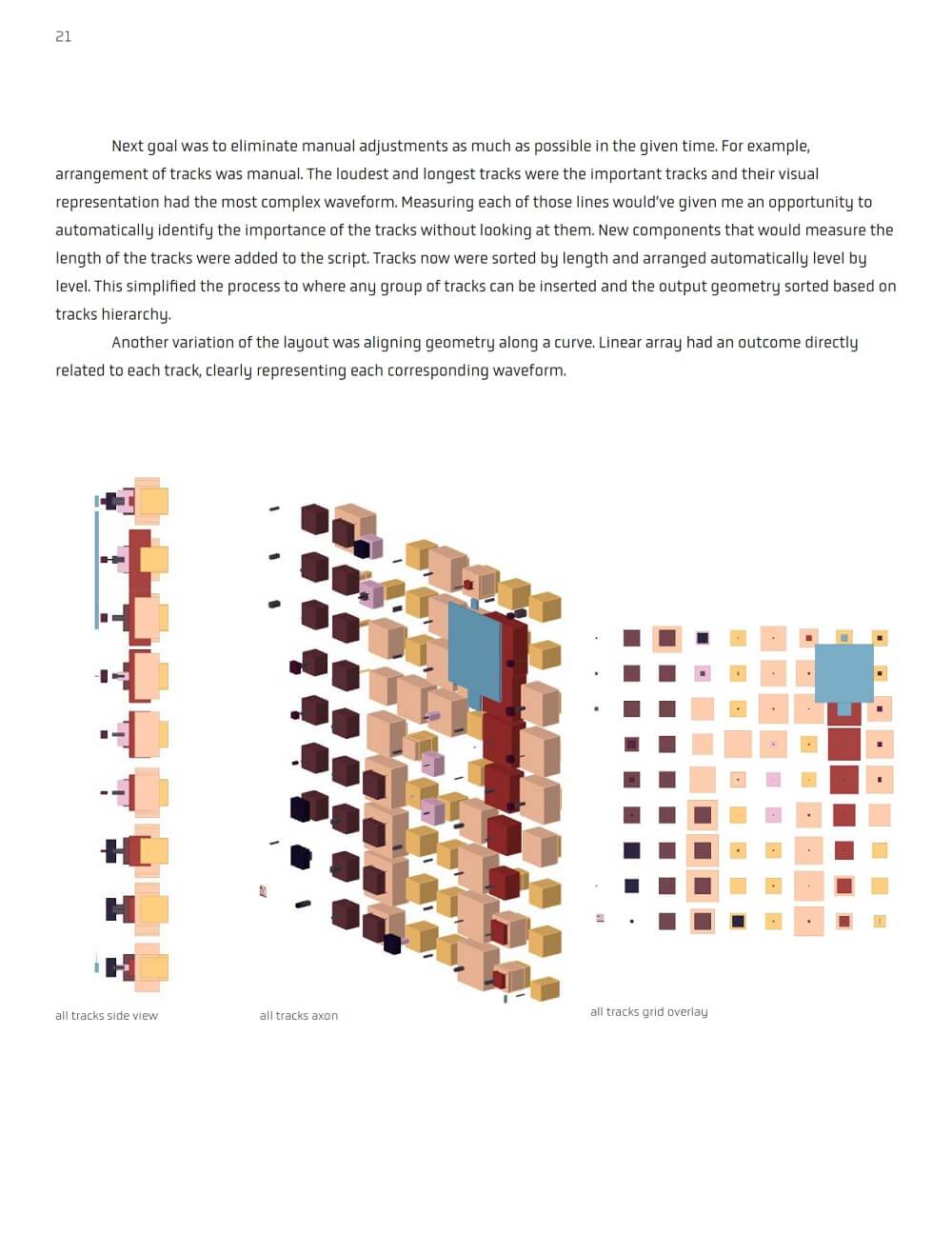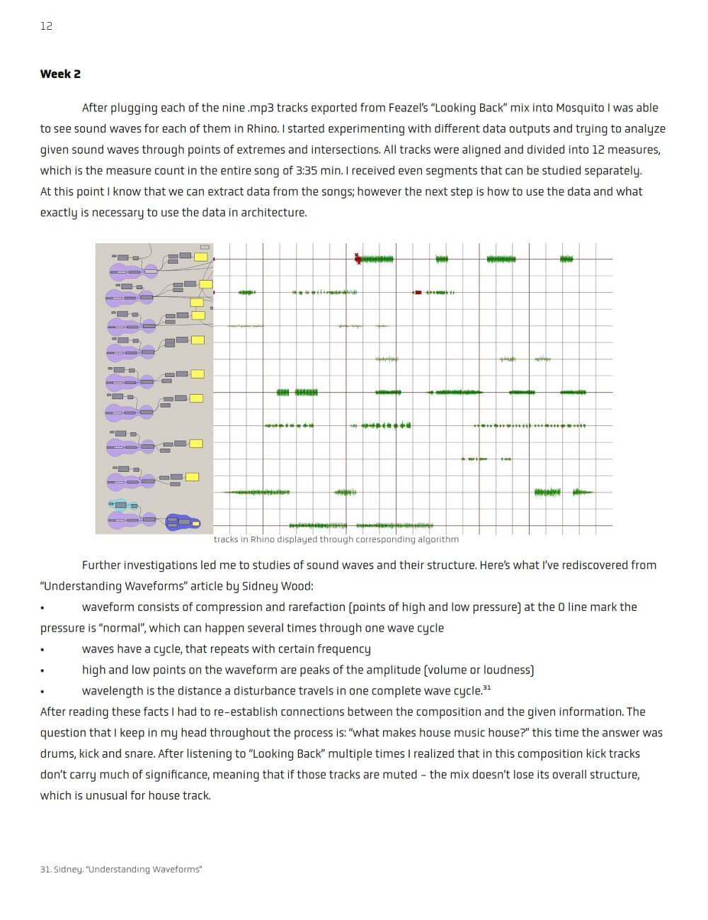 Contemporary music undergoes similar process of creation to that of the design process through computation and variation. House music as a representation of contemporary culture has a layered structure that allows specific characteristics to identify it as house music. Song components can vary and mix in different orders that form new dynamic compositions. Polina Timchenko in her thesis “Audio to Architecture: House Music as a Form Generator” is going to explore the idea that every house music component can be translated into geometry with the use of parametric design techniques.