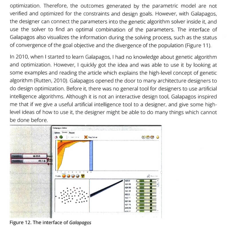 Designers can use artificial intelligence, such as Genetic Algorithms, to deal with the design problems which seem impossible to be quickly resolved by the human mind. However, none of the current Al algorithms interact with the designers while executing the assigned tasks.