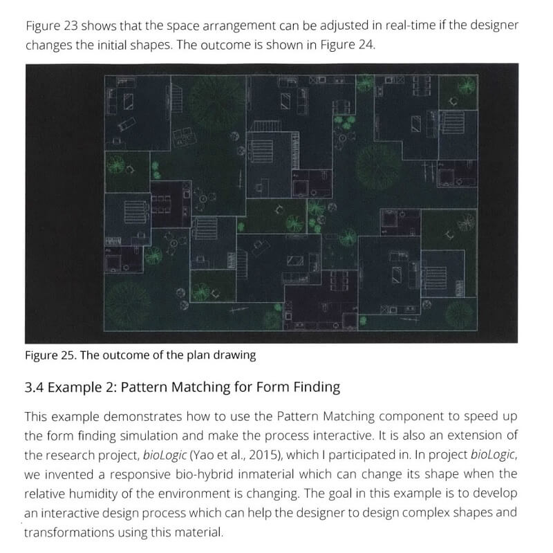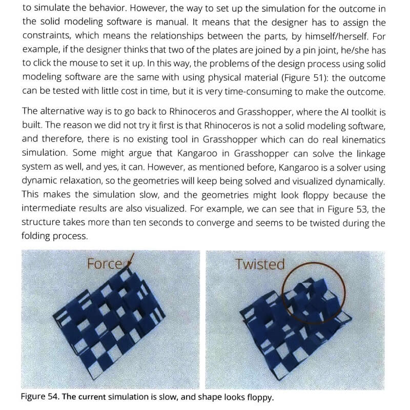 He also creates an interactive design tool for a modular kinetic structure system. The tool for the structure system utilizes multiple Al algorithms to show that the framework and toolkit can help designers navigate a complex design problem. Finally, He will open the toolkit and examples to the computational design and computer science community.