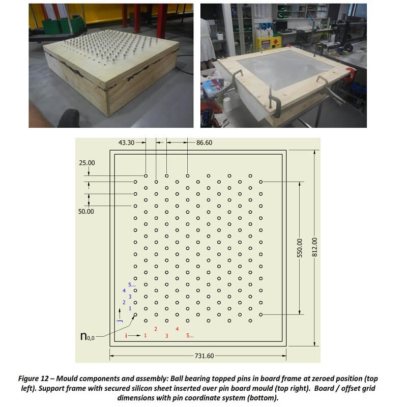 Detailed within this paper by Judah Hook, is the investigation and development of an alternative fabrication concept that utilises an inexpensive, reusable “pin board” mold that is autonomously set to various CAD derived surface geometries by a 6-axis robotic arm manipulator.