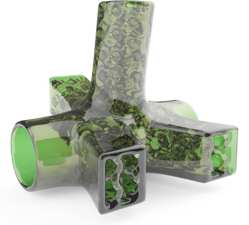 AXOLOTL by worbit provides a set of components for volumetric modeling in Rhino Grasshopper. They work based on the principle of signed distance functions (SDF). In boundary representations (BRep), objects are defined by vertices connected by edges and faces. In function representations (FRep), objects are defined by a function f that maps any point (x,y,z) to a real value d, the distance to the objects: f(x,y,z)=d