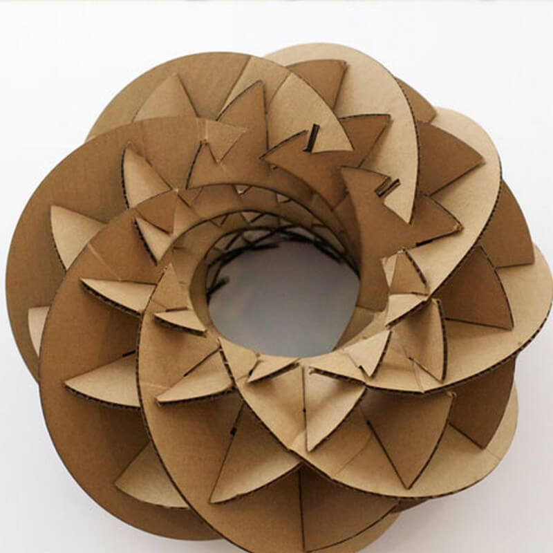 Different from the former ball, which shape is made of the surface pieces, the torus has an entire 3D shaped built out of card board. Again, she got inspired from Yoshinobu Miyamoto, Architect and Professor at AIT (Aichi Institute of Technology, Japan).