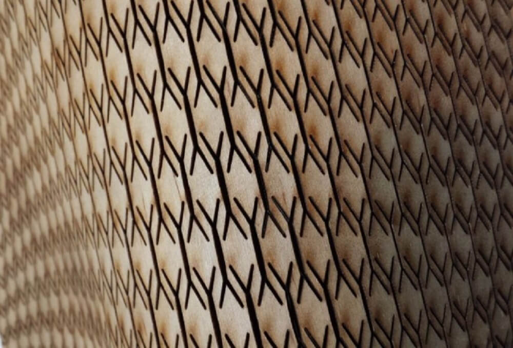 Living hinges work by exploiting the natural tendency for materials to flex around an array of cuts or notches. As we will see, it is possible to achieve this effect with quite a diverse visual impact; as the core concept of strategically placed cuts can still be achieved using many design variations. In the following test cuts by Martin Breuer, different patterns were evaluated for their pliability and strength across several criteria.