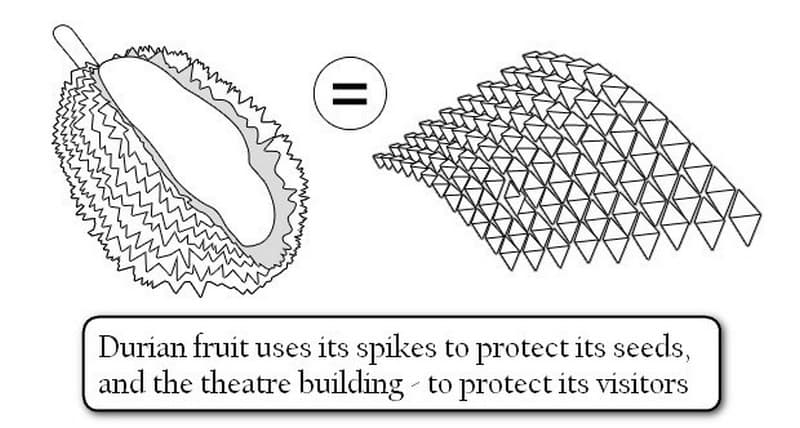 Parametrichouse: The Esplanade theater and commercial district in Singapore by DP Architects and Michael Wilford host an elaborate skin inspired by the Durian plant. The external shading system is also responsive in that the triangular louvers adjust during the day to the suns angle and position.