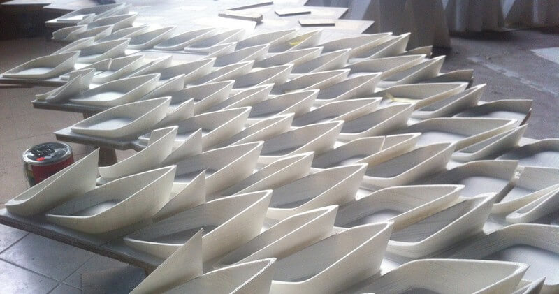 Desktop ZMoprh printers based on open-source RepRap project were used to produce the installation. The printers used FDM technology. Biostagog is composed of 3160 cells which were subdivided into over 800 panels to fit into ZMorph priners’ working space. 5 machines where used 24 hours, 7 days a week for 3 months to print it.