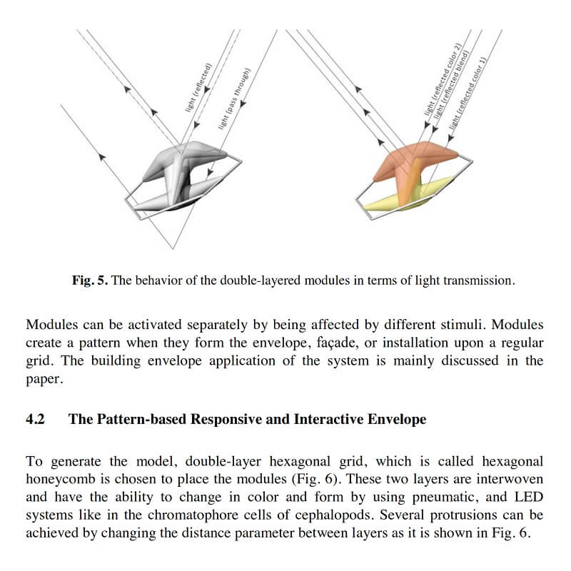 In this paper by Hülya Oral and Gülen Çağdaş, the changes on the bodies of color and form changing living organisms are implemented to the building envelope as a dynamic process of adapting to the environment in terms of interaction.