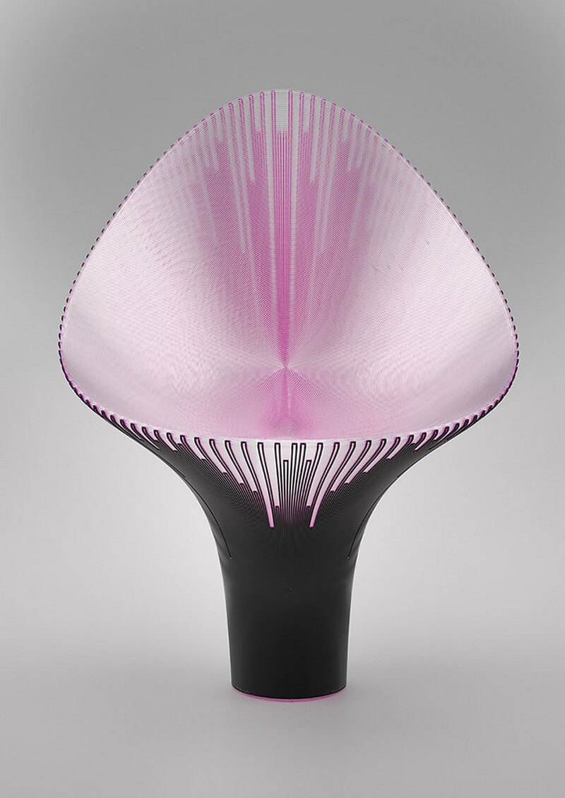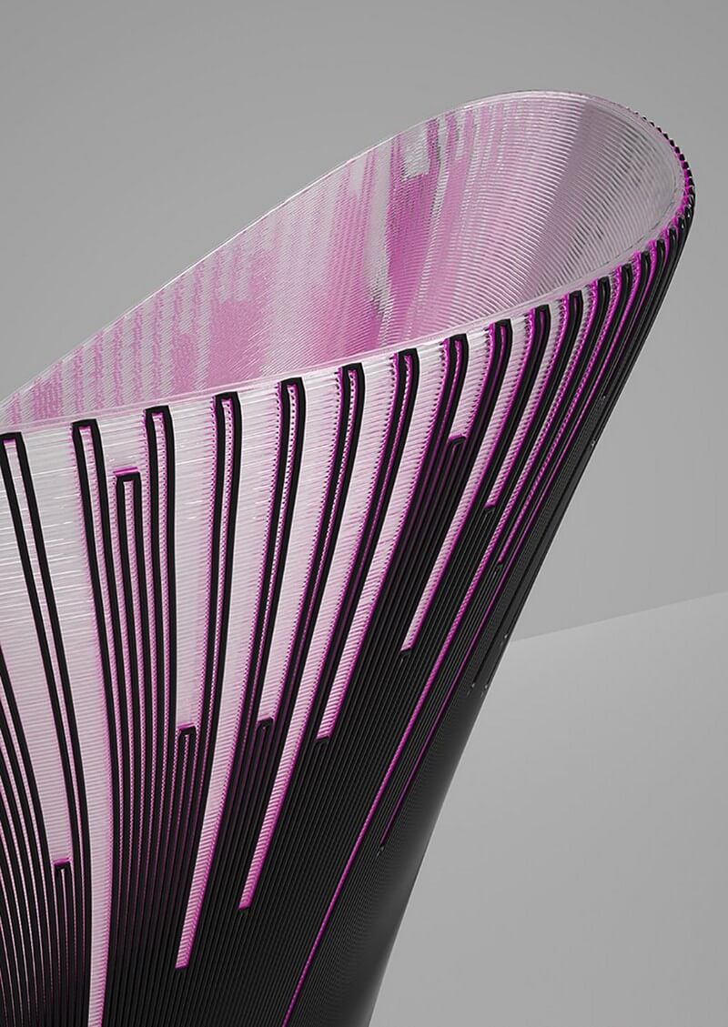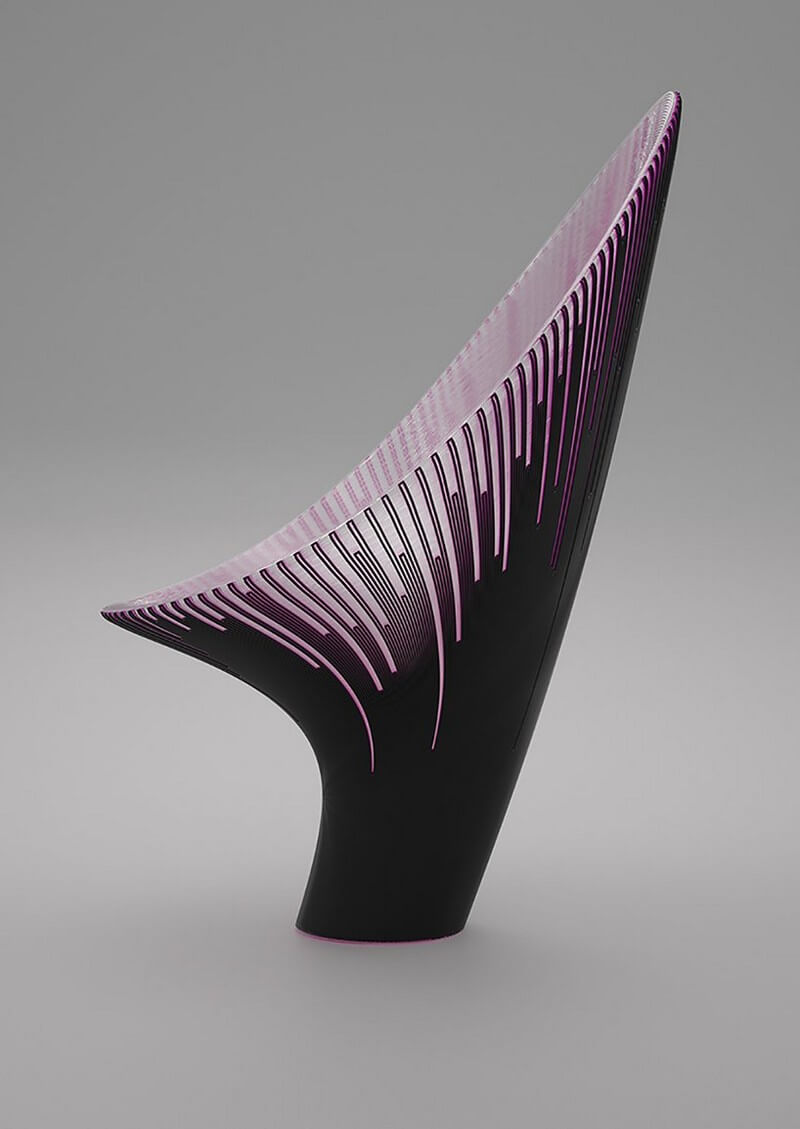 Bow is the result of Zaha Hadid architects’ extensive research with 3D printing and material experimentation. It’s biodegradable, and machine-optimized — printed with a pellet-extruder (meaning, they employ plastic particles rather than filament), and colored in such an adaptive way. This chair is highly empathetic to the room it find itself in.