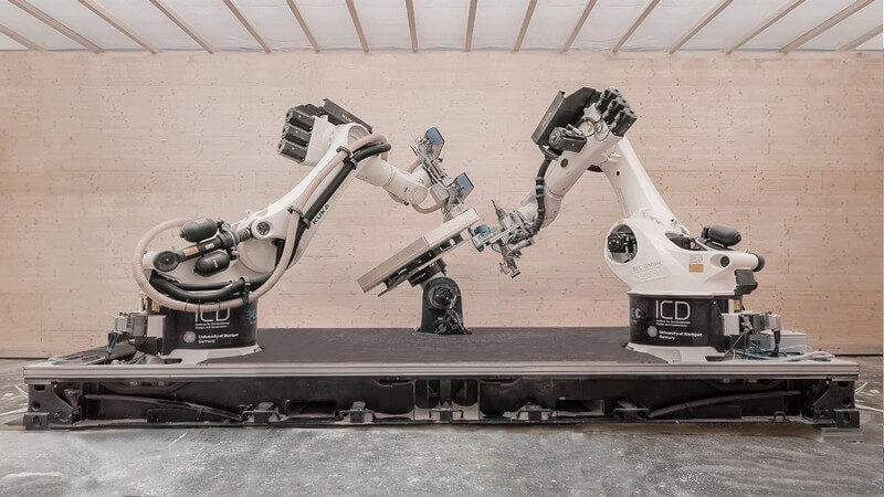 As part of the project, a robotic manufacturing platform was developed for the automated assembly and milling of the pavilion’s 376 bespoke hollow wood segments. This fabrication process ensures that all segments fit together with sub-millimetre precision like a big, three-dimensional puzzle.