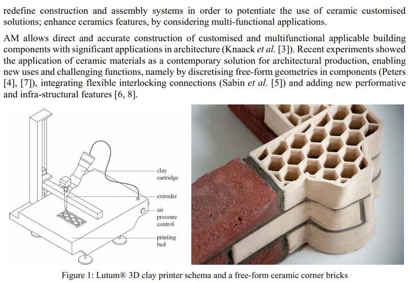 The advent of Additive Manufacturing (AM) of ceramic, brought unprecedented possibilities for the building industry while exploring and incorporating components with specific design requirements. It definitively reshaped and expanded the boundaries of what’s possible to achieve with masonry construction and opened new domains, with multiple angles of study and experimentation and with a large industrial potential.