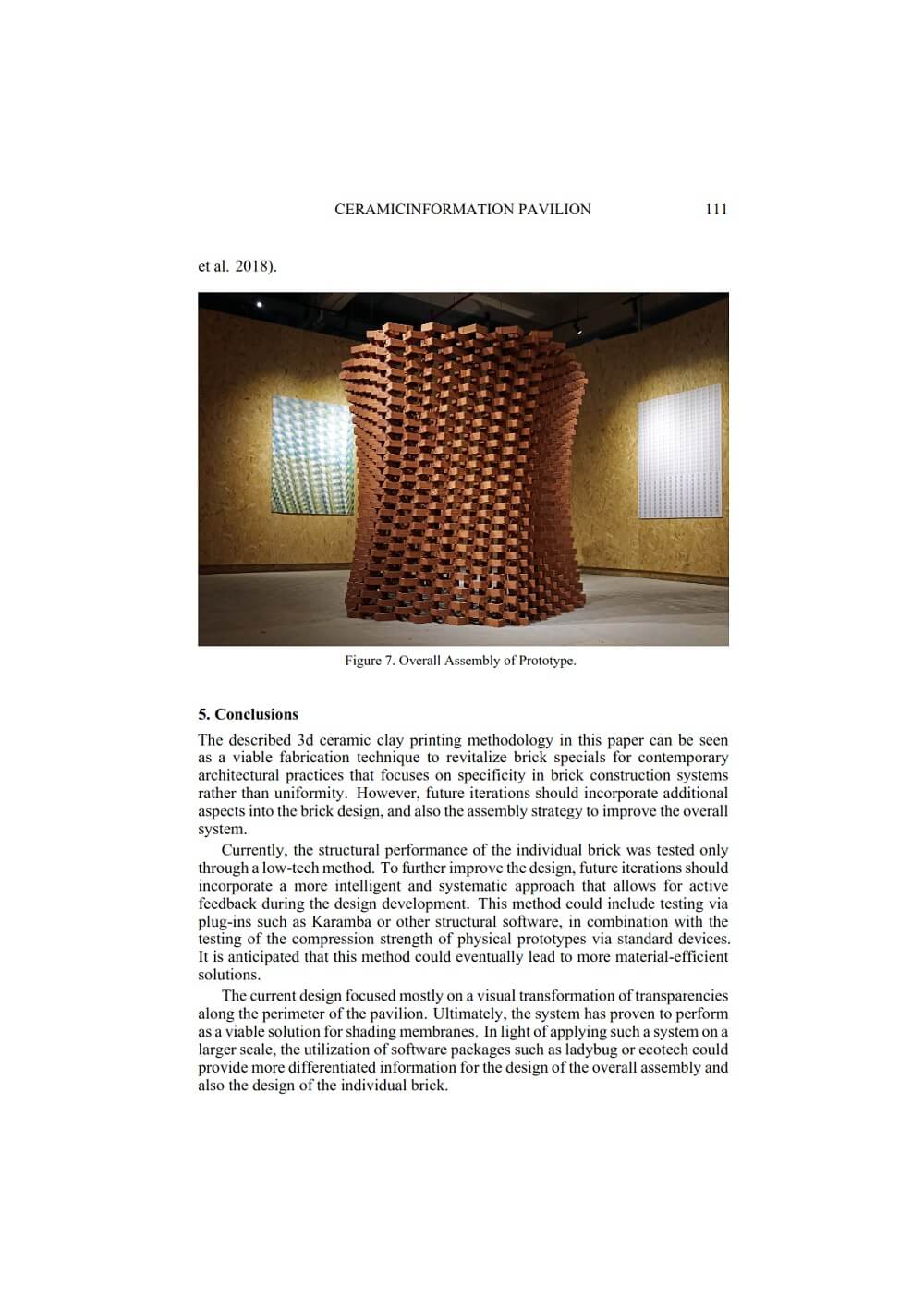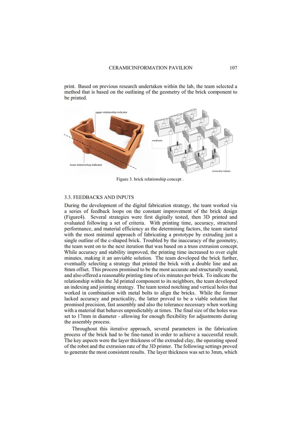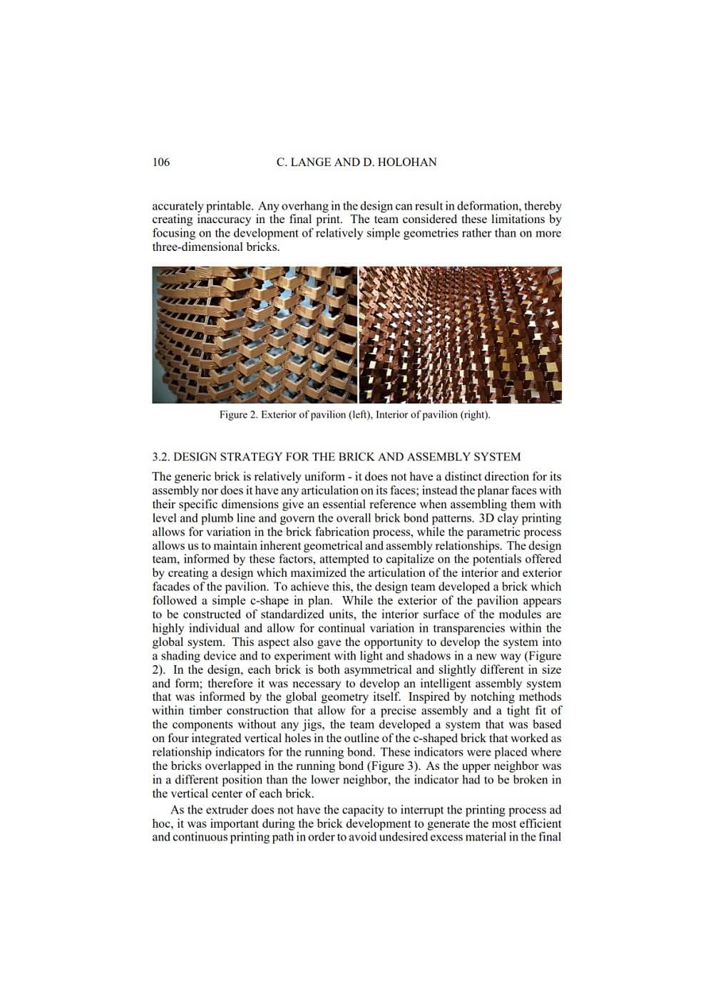 This paper by Christian Lange and Donn Holohan describes the second stage of an ongoing research project which attempts to revitalize the material system of the brick special through the development of an intelligent 3d printing method that works in conjunction with a layman assembly procedure for a new class of self-supporting nonstandard brick structures. In this project, an indexed and geometrically informed jointing system, together with a parametric and digital workflow, enables rapid assembly on site without a requirement for complex site setup or skilled labor.
