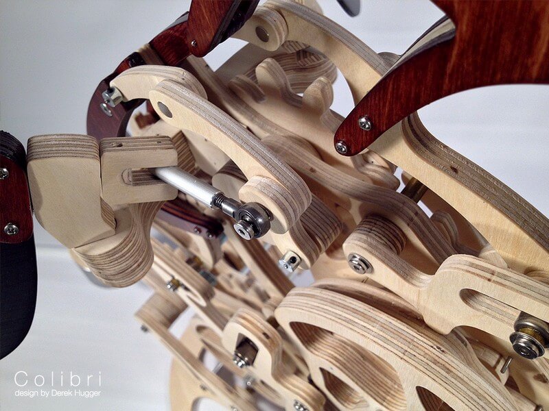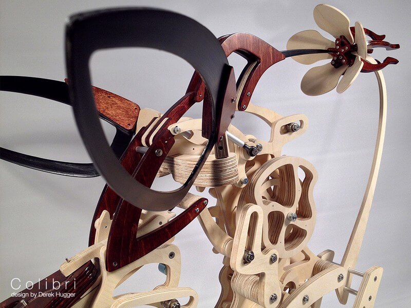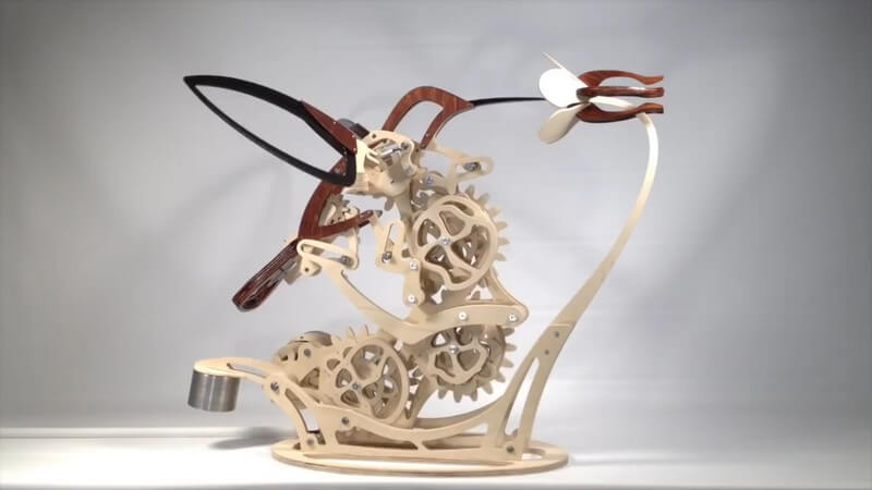 Colibri’s motions are unlike those of any other wooden sculpture. Every movement has been carefully optimized to be as life-like as possible. As Colibri hovers and flies, the smooth motions of its wings, tail, head, and body work together seamlessly to produce a beautiful and captivating visual sequence.