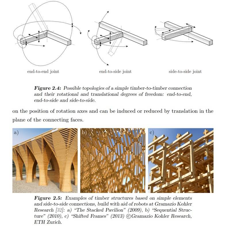 This research has investigated these complex interrelations and developed appropriate tools to handle and exploit them in an architectural design process. First, computational methods for geometric modelling are presented, addressing specific design parameters of two exemplary topologies: layered truss-like beams and butt T-joint based structures.