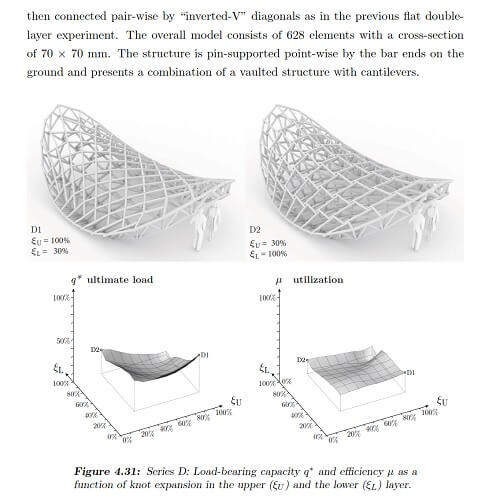 The resulting flexibility of such constructive systems not only offers applicability for free-form architectural designs but also holds potential to diversify geometry of individual elements according to their structural and fabricational demands. However, as exemplified by two case studies, this potential is challenged by the high level of complexity originating from an intricate interplay of geometry, material properties, structural phenomena and fabrication requirements.