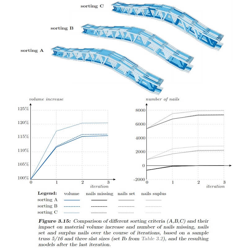 Second, interdisciplinary data- and workflows have been established to facilitate integration of further design aspects – fabrication and structural performance – and to investigate their interdependencies with geometric para- meters. Third, algorithmic strategies are proposed to process the data collected from different disciplines so that it can be used to inform and improve the design.