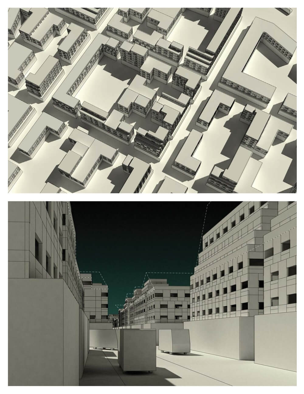 Recent advances in computational tools can be used to efficiently generate a solution space of potential typologies to fill this gap in current urban design and analysis software. As such the broader goal of this research is to develop a design system that derives high density urban fabric according to a nuanced simulation of urban energy demand. Daylighting, out of the multiple energy reduction strategies available, offers significant opportunity for architectural optimization. Daylighting varies greatly, even at relatively high densities, due to the effects of ambient light, surface reflectance, and building geometry. In conjunction with the decreasing contribution of heating demand in the overall building energy budget this indicates that gains in urban energy efficiency today can be made by focusing on reducing lighting energy demand. Therefore the current goal of this research is to develop a proof-of-concept that generates and optimizes city fabric according to the conflicting objectives of building daylighting potential and urban densification. The proof-of-concept will consist of a parametric set shape grammar that is extended with existing software or algorithmic models to achieve the current goal.