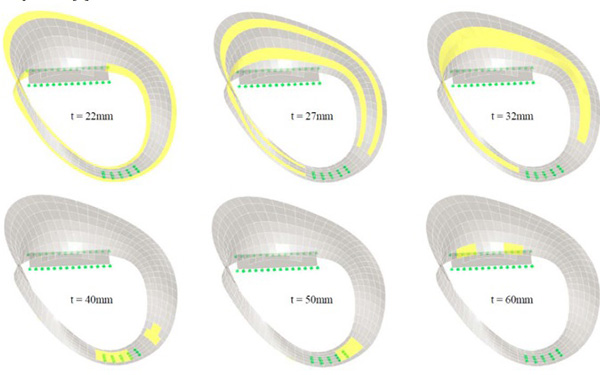 Due to the slenderness of the concrete shell a buckling investigation is mandatory since it might be the governing failure design criteria. The areas of interest are those with compressive membrane forces at the outer edges where the shell has the smallest thickness and the smallest curvature.