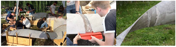 On the campus of University Kassel one can find an innovative, form active, ultrathin concrete shell structure designed as a Möbius strip. Due to the prefabrication in a laboratory as well as the absence of a crane it was mandatory to partition the object and to assemble elements on site.