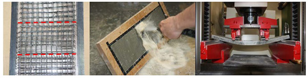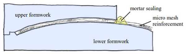The structural concept envisaged a fully rigid system so a novel stop-end construction technique for the mesh reinforcement was developed. To guarantee the rigidity of the connected joints, the reinforcement layers need to overlap and thus the requirement of casting stop-ends for the mesh reinforcement occurs.