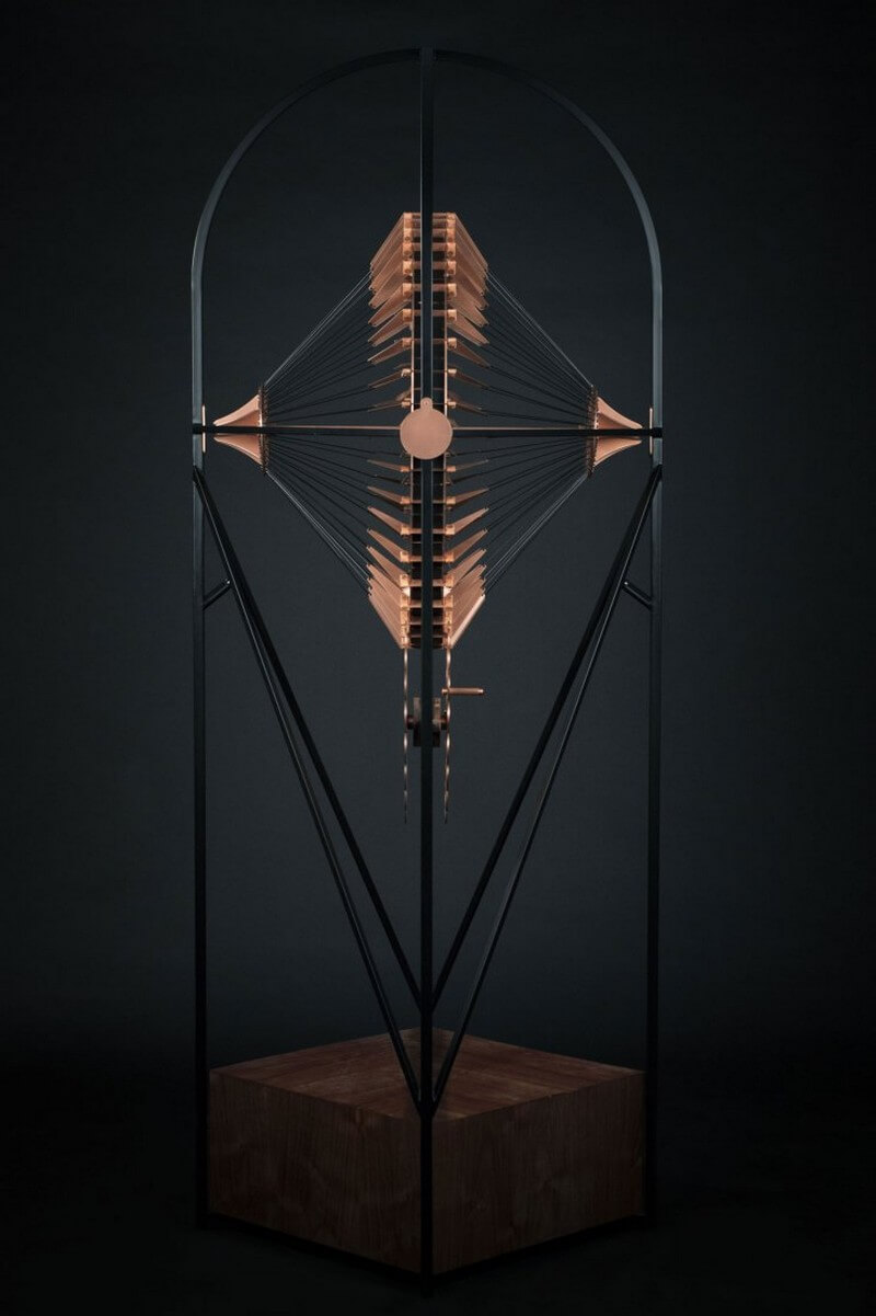 Larose Guyon developed a design for New York-based Rockwell Group’s brand new EMC2 Hotel in Chicago and came up with an interactive sculpture that combines ingenuity, art and science. Inspired by machines drawn and manufactured for the New York Art Director Club in 2015, the Rockwell Group asked designers/artists at Larose Guyon to create an distinctive piece of art for the EMC2 Hotel’s lobby.