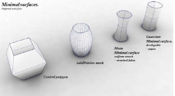 This is in alignment with established benefits of subdivision surface based modeling paradigm in architectural form-finding, and the application of dynamic relaxation techniques on subdivision surfaces to design and fabricate minimal mean curvature surfaces – so called minimal surfaces.