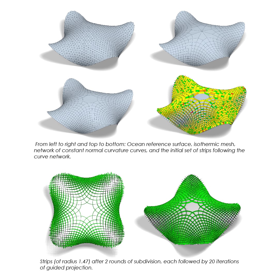 This means that they have to come up with quad meshes whose mesh polylines discretize the system of curves of constant normal curvature Kn on a smooth surface.