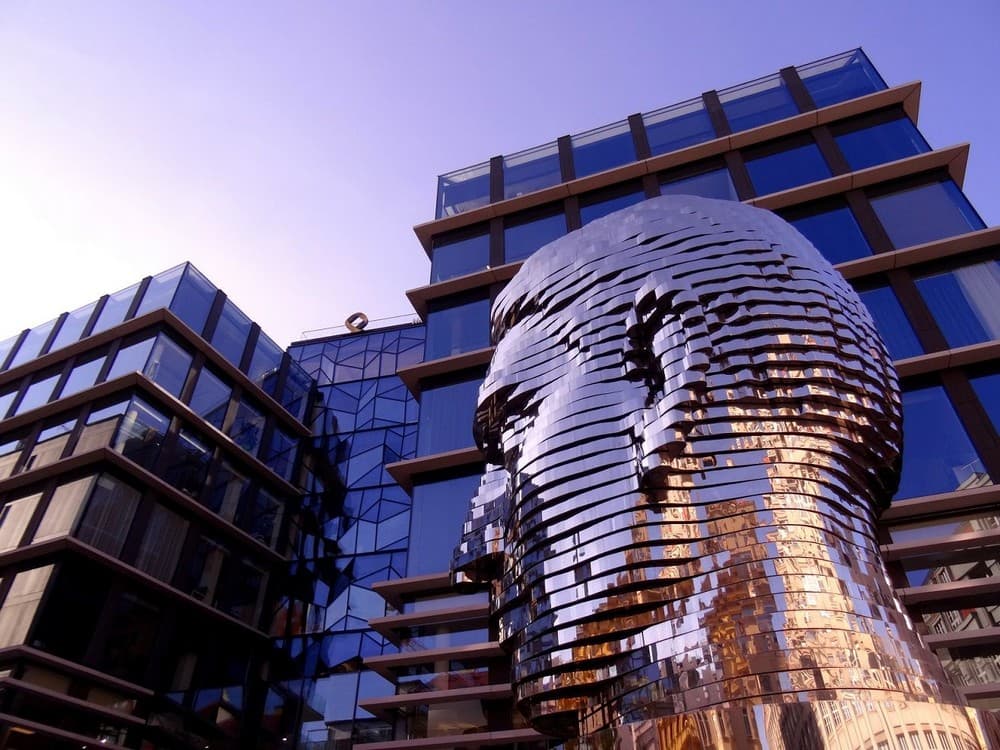 Installed in 2014, the enormous mirrored bust is comprised of 42 independently driven layers of stainless steel and weighs in at some 45 tons. The piece brilliantly reveals Kafka’s tortured personality and unrelenting self doubt that plagued him his entire life.