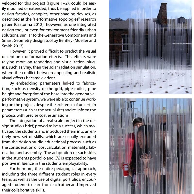 This paper by Asterios Agkathidis and Tuba Kocaturk reflects a collaborative, research led design project, aiming to explore the potentials offered by incorporating parametric / generative tools and performative lighting simulation software in order to design and fabricate a small pavilion for the School of Architecture.