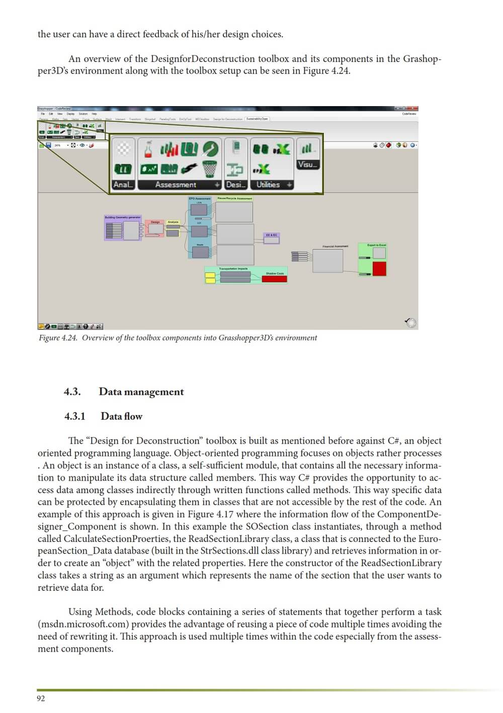 Furthermore, the main objective is to implement the proposed strategy into a computational modelling toolbox based on the principals of parametric and associative design. The toolbox will provide assessment of the various factors which could affect the early design stage of a project, aligning with the main requirement of Designing for Deconstruction that is to be applied in this preliminary stage of a design process.