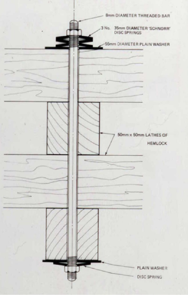 The additional shear block and diagonal ties would also have to be installed before the supports could be removed. To assist the contractors with understanding the problems involved the engineers made a model using wire mesh weighted so that the bending stiffness and self weight were modelled.