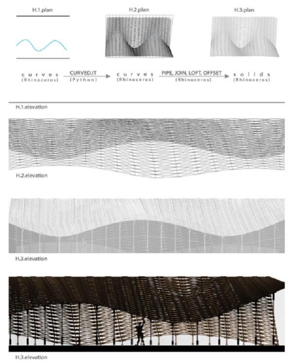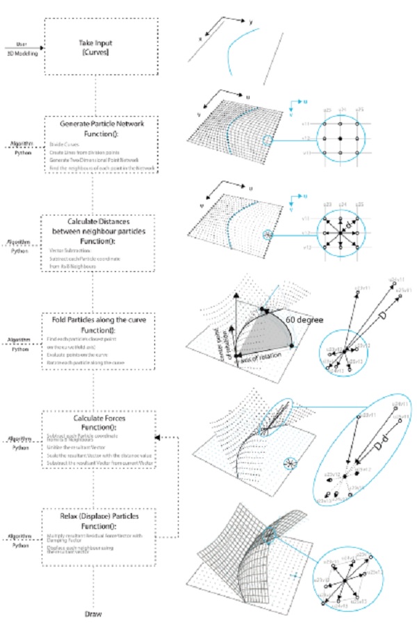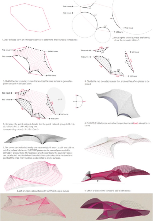 From a digital design perspective, the implementation of curved folding with the built-in toolsets of available computer-aided design softwares is a challenging problem. The equilibrium state of curved folded geometry is needed to be found with a computational form-finding strategy.
