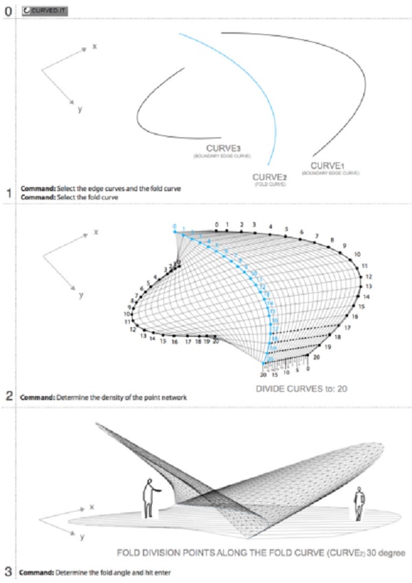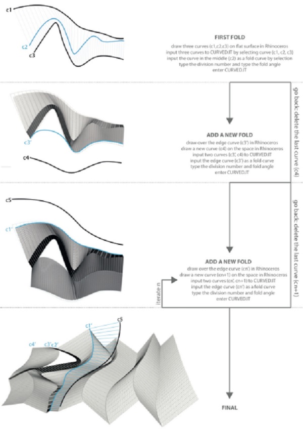 The act of changing the direction of a sheet surface along a non-straight curve is a specific case of curved folding. From an architectural point of view, curved folding is an exciting operation. One or a couple of operation can generate highly complex shell-like spatial enclosure.