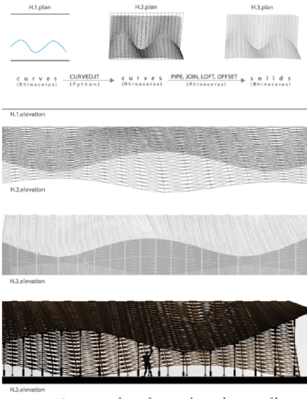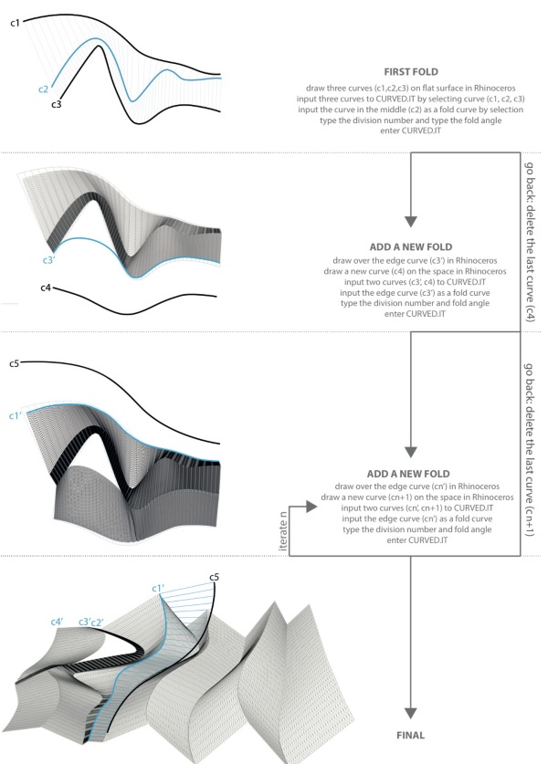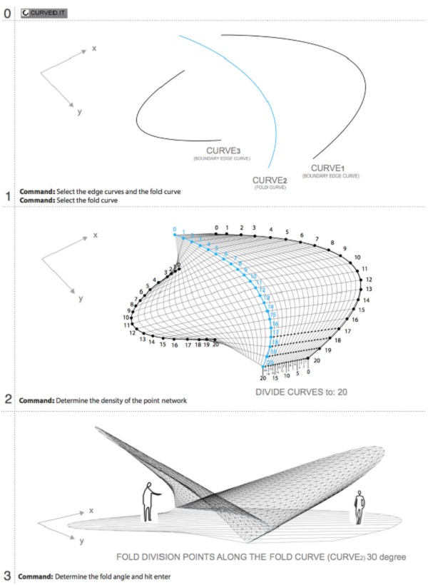 From a digital design perspective, the implementation of curved folding with the built-in toolsets of available computer-aided design softwares is a challenging problem.