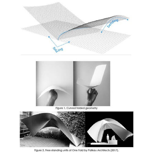 The act of changing the direction of a sheet surface along a non-straight curve is a specific case of curved folding. From an architectural point of view, curved folding is an exciting operation. One or a couple of operation can generate highly complex shell-like spatial enclosure.