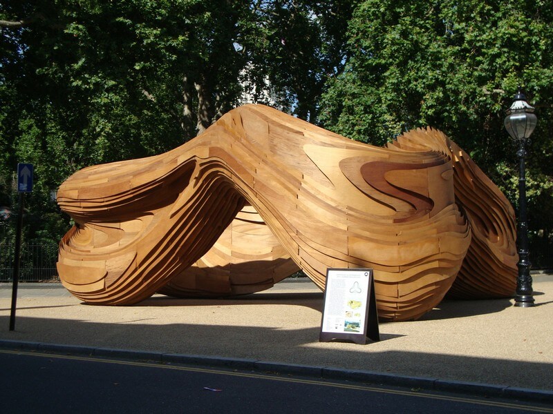 The Architectural Association School of Architecture has unveiled their 2009 summer pavilion, designed by third year Danecia Sibingo, its undulating form was outside the AA in London’s Bedford Square. This was the fourth year that the AA has challenged its students to create a temporary Summer Pavilion from sustainable timber.