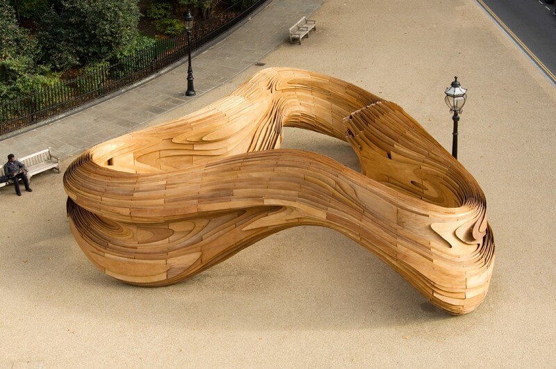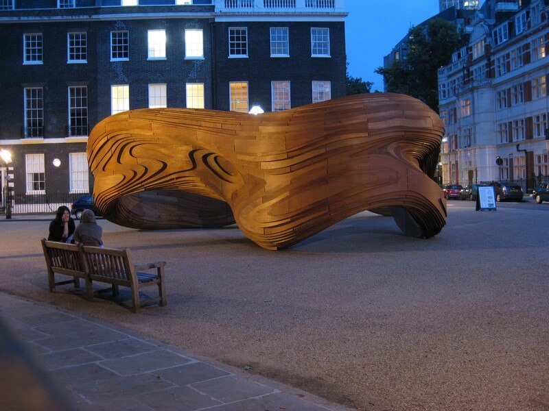 Apparently it “provides a thoughtful, provoking reminder of the UK’s inextricable link to the sea – its undulating form created by the motion of the water, carried by waves and coming to rest in busy central London”. Driftwood was at display in Bedford Square until July 25, 2009