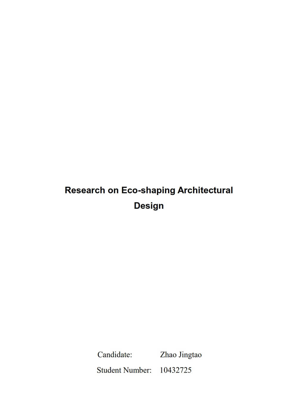This paper by Zhao Jingtao proposes the theoretical framework of Eco-shaping Architectural Design Approach, explains its work flow and verifies the effectiveness in one architectural design practice. Based on the cross discipline filed of parametric design and architectural ecological simulation. The study start with the simulation of environmental factors affecting the architecture’s ecological performance such as solar radiation and wind field. Based on the theoretical foundation of Complexity Science, Form Generation, and Performance Driven Design. Powered by Parametric Design technique and Building Performance Simulation technique as the operate platform. Using a method combined bottom-up self-organized generating and up-down performance driven optimizing.